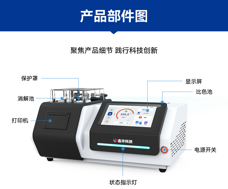 除了以上這些亮點(diǎn),LH-C500的檢測項目還完全符合國家行業(yè)標(biāo)準(zhǔn),如COD-《HJ/T399-2007》、氨氮-《HJ535-2009》、總磷-《GB11893-89》等,讓用戶在檢測過程中更加放心、安心。同時,產(chǎn)品配套齊全,包括各種液體耗材、密封反應(yīng)管、冷卻架、管比色架、比色皿座、移液槍、定量器、一機(jī)打印紙等,讓用戶在使用過程中更加省心、便捷。
