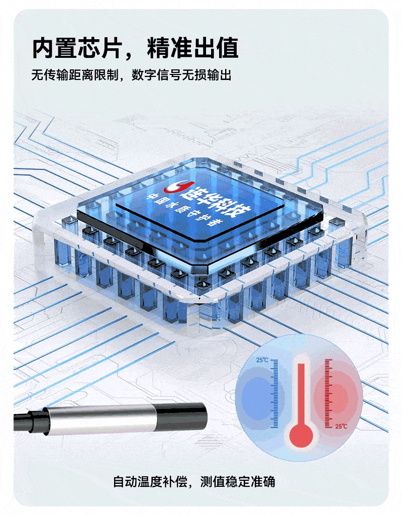 2、采用數字電極技術,突破傳輸距離限制,默認5米線長(支持定制),結合自動溫度補償功能,確保戶外檢測信號穩定、測量精準;